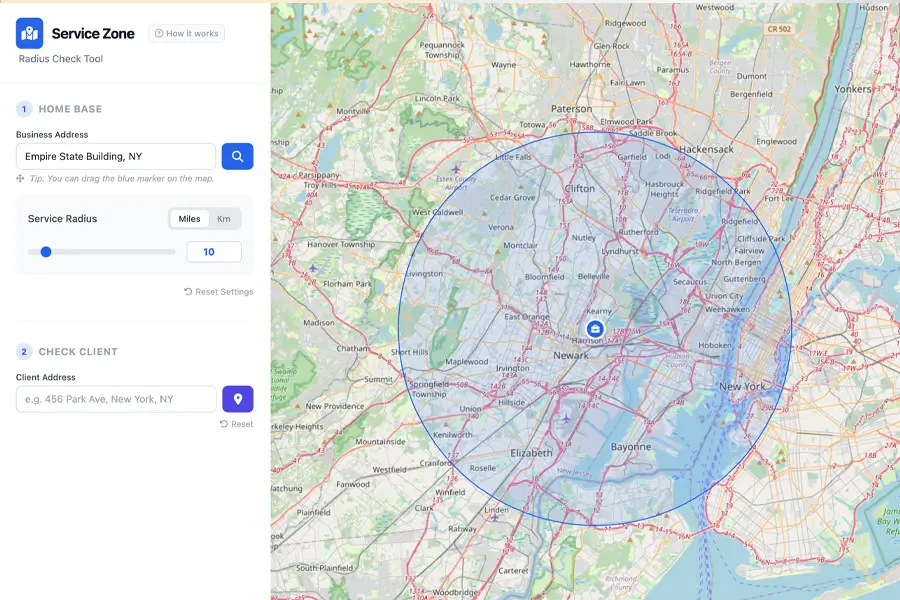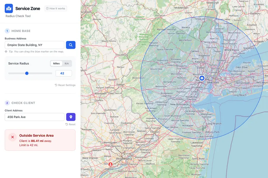 Service Area Radius Checker